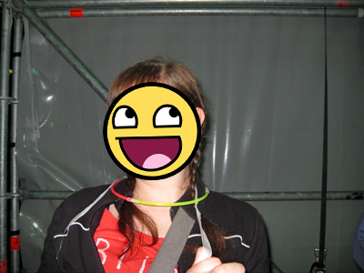 At the beginning of Uprising a girl at the corner of the sounddesk barrier decided she needed a better view at the expense of ours and sat on her friend's shoulders. And while I was somewhat pissed I also watched events unfold with quite some glee. Because, you see, Crowd Safety girl came over to tell shoulders girl to come down, but Crowd Safety girl was completely ignored. I don't think shoulders girl even noticed that it wasn't just anyone who poked her there, but someone WHO CAN PULL HER OUT. Muahaha. Crowd Safety girl then left to get someone more visually impressive and Biffy shirt girl, who stood right behind shoulder girl, decided to do some poking. That lucky girl was even rewarded with shoulder girl's attention... even if it was just to swat that annoying hand away. Then big Crowd Safety guy arrived and look how fast the girl gets off her friend's shoulders.