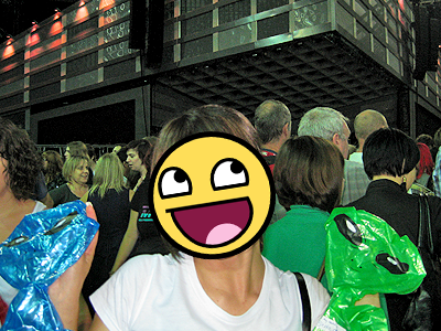 My sister with our aliens.HOLY SHIT, BEST CONCERT EVER! I liked the crowd from the 10th better (Yay for being surrounded by boardies!), but OMG, the selist. THE SETLIST! THEY PLAYED ALL OF MY 4 FAVORITES IN 1 GIG! Really, I loved it so much I would have tweeted declarations of love at Muse. The only reason I didn't was because I recently tweeted from my phone and when I looked online I saw that @ turned into an upside down exclamation mark. So what's the point of tweeting if it does't reach the recipient.