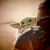 Description: Concept art from 1x02: The baby looking towards the viewer over Mando's shoulder.